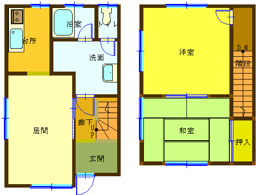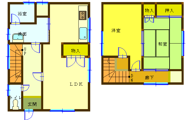 | B-43 | 空 | 外観 間取 | 1階 台6、和6 2階 洋4.5、和6 | 湯沢市中野 | 47,000円 | 仲介手数料1ヶ月+消費税 保険18,000円~(2年間)、トイレ水洗、 風呂シャワー付き、車一台込 |