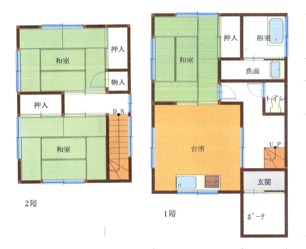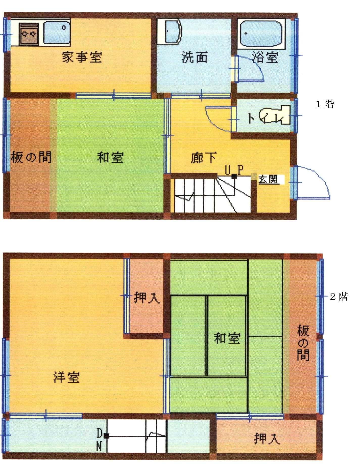 | B-44 | 済 | 外観(準備中) 間取 | 1階 台8 和6×2 和8 2階 和6×2 和8 | 湯沢市大工町 | 50,000円 | 仲介手数料1ヶ月+消費税 保険18,000円~(2年間)、車1台込(軽)、 (2台目~3,000円、但し11月~3月無料) トイレ水洗、風呂シャワー付き |