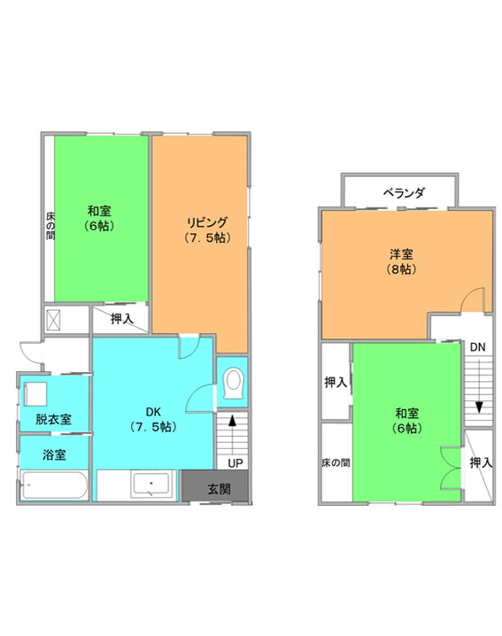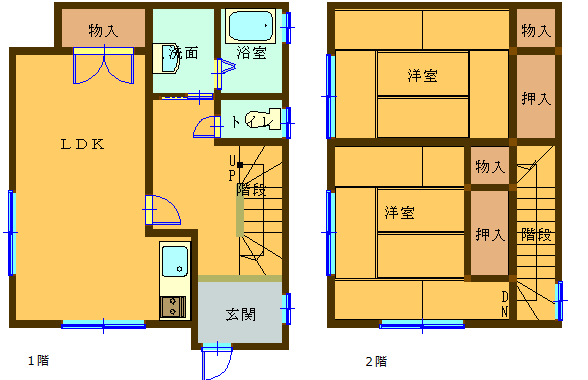 | B-68 | 済 | 外観 間取 | 1階 LDK10 和6 2階 洋8 洋7.5 | 湯沢市清水町5 | 60,000円 | 敷金、権利金有り 仲介手数料1ヶ月+消費税 保険18,000円~ 駐車 2台含む エアコン有 ユニットバス 学区 湯沢西小学校・湯沢南中学校 |