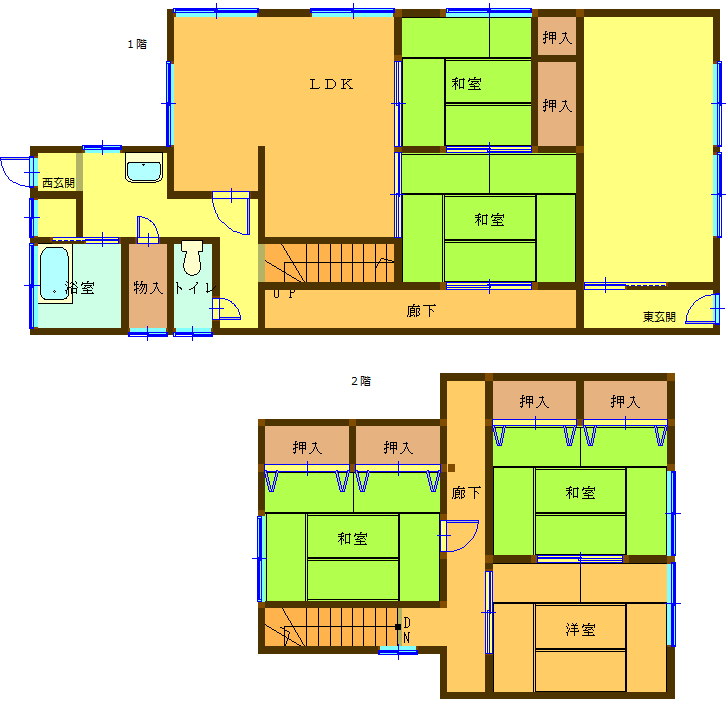 | B-37 | 済 | 外観(準備中) 間取 | 1階 台6.25 和8 和6 洋6 2階 和8 和6 | 湯沢市清水町6 | 45,000円 | 仲介手数料1ヶ月+消費税 保険18,000円~、トイレ水洗 風呂シャワー付き |